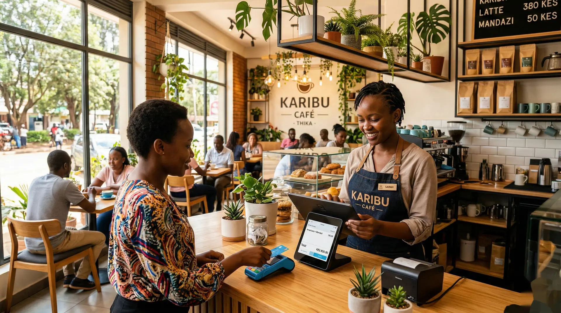 Enable M-Pesa, cash, and card payments. Configure receipt printing if needed.